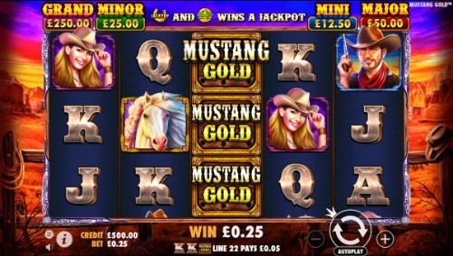 Mustang Gold is a slot game that transports players to the rugged landscapes of the American West, where wild horses roam and adventure awaits. With its vivid graphics and immersive soundscape, the game brings the frontier spirit to life. Engaging features, such as special symbols and interactive bonus rounds, keep every spin exciting. The cowboy and cowgirl characters add charm, while horseshoes and campfires complete the scenic prairie backdrop. Mustang Gold’s dynamic gameplay and atmospheric design make it a favourite among those seeking a taste of Wild West excitement and a chance to explore the legends of mustangs in their natural habitat.